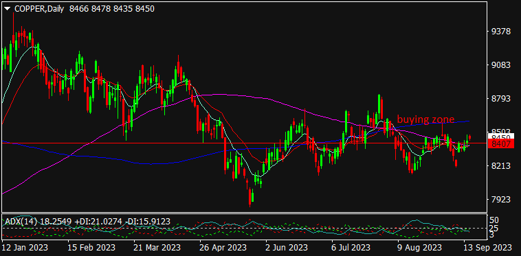 COPPER is trading at $8448.3, 0.12% up since previous close. A strong upside can be seen in base metals after China’s PBoC cut-down Reserve Requirement Ratio (RRR) by 25bps which may boost the industrial activities & hence, may increases the demand of copper since China is a major consumer of base metals. Globally, the soft USD as traders hopes for no-change monetary policy in FOMC’s upcoming meeting after U.S CPI data shows mild change in the inflation rate; led buying pressure in global commodities. As seen in the chart, the Copper reversed up after testing the cluster support & crossed over the long-term MA (100) & short-term MA (10). A strong breakout can be expected for the day in copper if upside prevailed further.