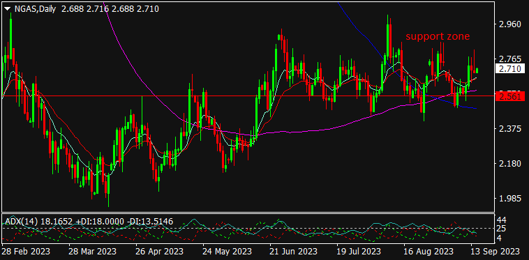 Natural Gas is trading at $2.710, 0.08% down since previous day close. The Natural Gas prices slid down post release of U.S Energy Information Administration (EIA) report which showed a rise in Natural Gas inventory level by 57B higher than expected build-up of 51B. This signals for higher storage & supplies levels & hence, dragged down the prices. Earlier, the prices traded at higher levels amid rising consumption demand of heating fuels from U.S & European regions on account of change in weather conditions. Uncertain FOMC monetary outlook will remain vital for energy commodities. As seen in the chart, although the Natural Gas corrected down; yet it is still trading above the short-term Moving Averages & hence, buying on lower side may be recommended for the day.