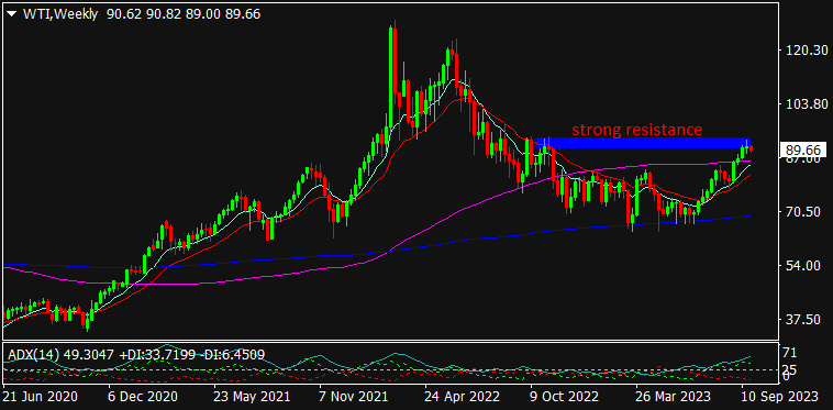 WTI Oil is trading at $90.28, 0.09% down since previous day close. The Oil prices seems to be trading on lower side against the strong USD as they are inversely correlated. The negative effect emerging out of U.S Fed’s hawkish stance in near future; though keeping an interest rate steady at 5.50% range made the Oil prices to trade weaker. Last week, the Russia banned its fuel exports which may affect the supplies of Oil throughout the world since Russia is one of the major suppliers of Crude Oil. & hence, made the prices to trade at higher levels. The supply cuts from Saudi Arabia & Russia will remain significant for the prices in long-run. Wait & watch strategy may be established for the day in WTI Oil.